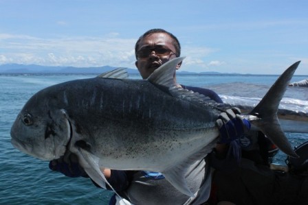 Trip pertama ke Raja Ampat telah saya posting di blog iseng ini. Silahkan klik Pertarungan Selat Dampier untuk kembali membacanya. Disana terlihat jelas bawah pada trip bulan maret 2011 tersebut kami terlihat sedikit gagap karena bermain di fishing ground yang benar-benar baru kami kenal. Hasil sebenarnya sangat maksimal tetapi kami merasa sedikit kehabisan tenaga mengkover areal yang demikian luas sementara di langit sepuluh matahari membakar tubuh kami hingga kering. Namun kami puas karena ada setidaknya GT monster yang kami naikkan. Ketiga GT tersebut up 30 kg dan di rilis kembali. Trip kedua dilakukan bulan Mei 2011. Kami mendirikan base camp sendiri di sisi selatan Pulau Batanta karena tergoda dengan “rayuan” dari Kapten D, yang berkata pada bulan Maret, bahwa jika kami menginginkan monster GT, maka Tanjung B lah tempatnya. Namun tak mungkin jika saat itu juga kami mengeksplorasinya karena Kapten D ini berkata pada hari trip terakhir. Memang si Kapten D ini kelewatan, bilang ada spot monster di hari terakhir saat tenaga sudah habis, bbm tinggal tersisa sedikit, dan logistik juga sudah menipis. Maka pada bulan Mei tersebut, kami kembali untuk membayar lunas semua penasaran kami dengan menaikkan beberapa monster GT di Tanjung B. Apalagi dalam trip ini ada pemancing popping kelas wahid Indonesia, yakni Rudi Hadikesuma yang merupakan jaminan naikknya GT monster. Kisahnya ada di Tentang Pemancing, Bulan, Hujan dan Ikan. Dan semua perjalanan ke Raja Ampat ini telah menghasilkan lima episode eksklusif untuk Mancing Mania Trans|7.